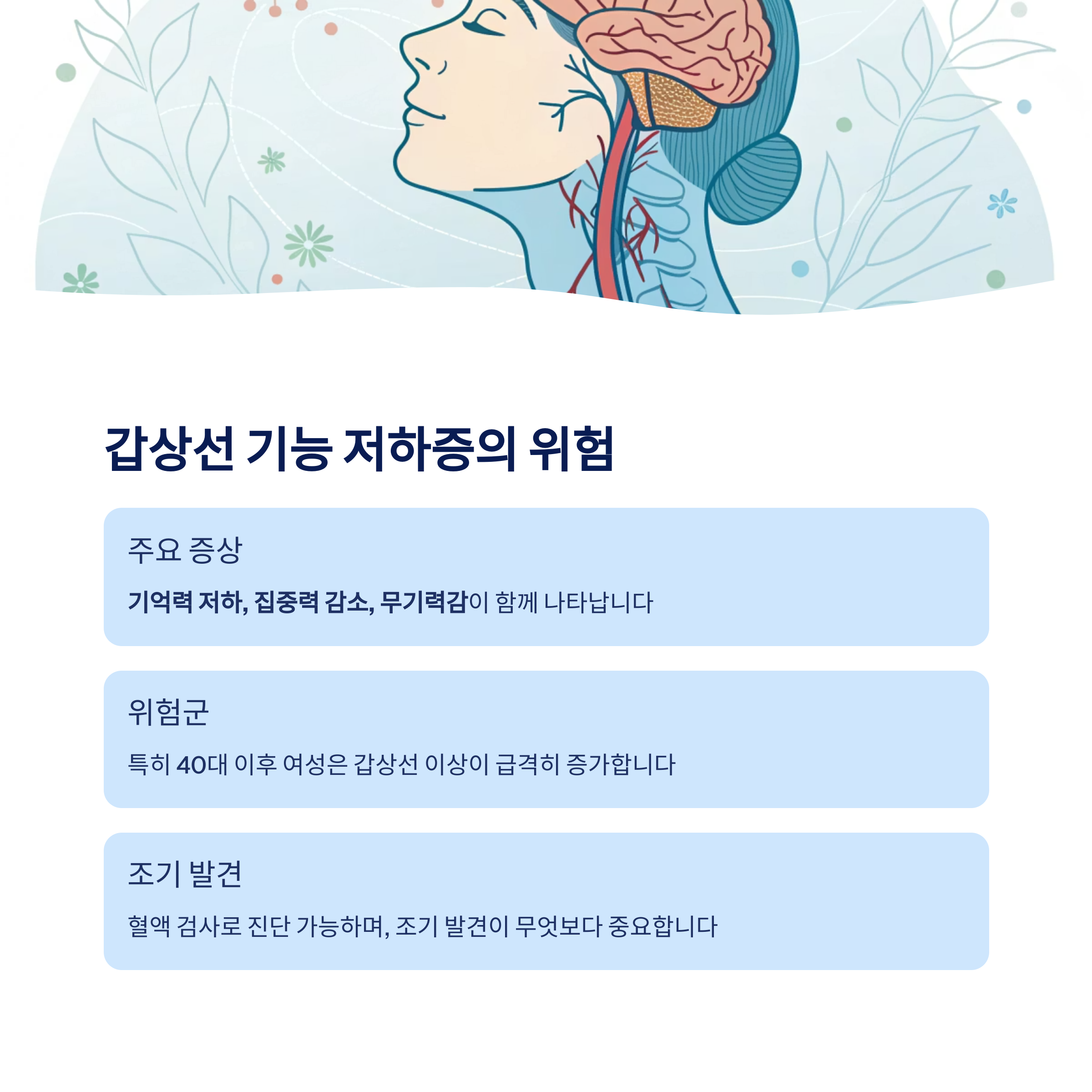 | 기억력 저하 | 갑상선 호르몬 부족으로 뇌 활동 저하 |
