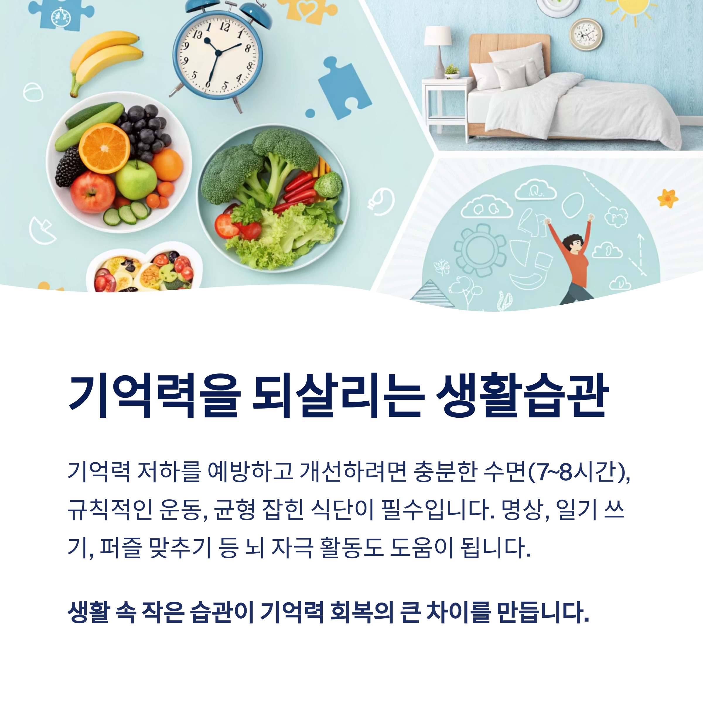 생활 속 작은 습관이 기억력 회복의 큰 차이를 만듭니다.