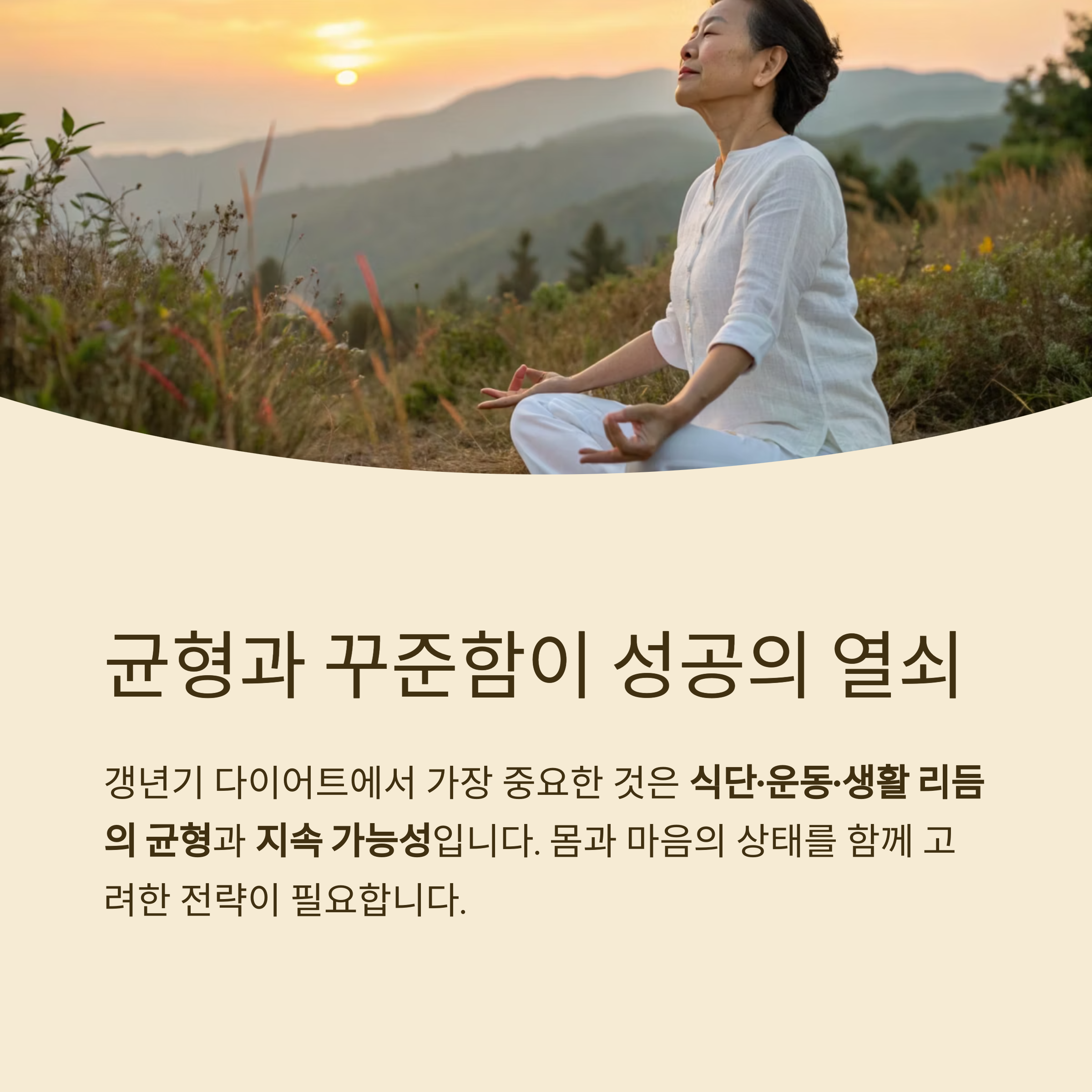 이처럼 중년 이후의 다이어트는 '지속 가능성'이 핵심입니다.