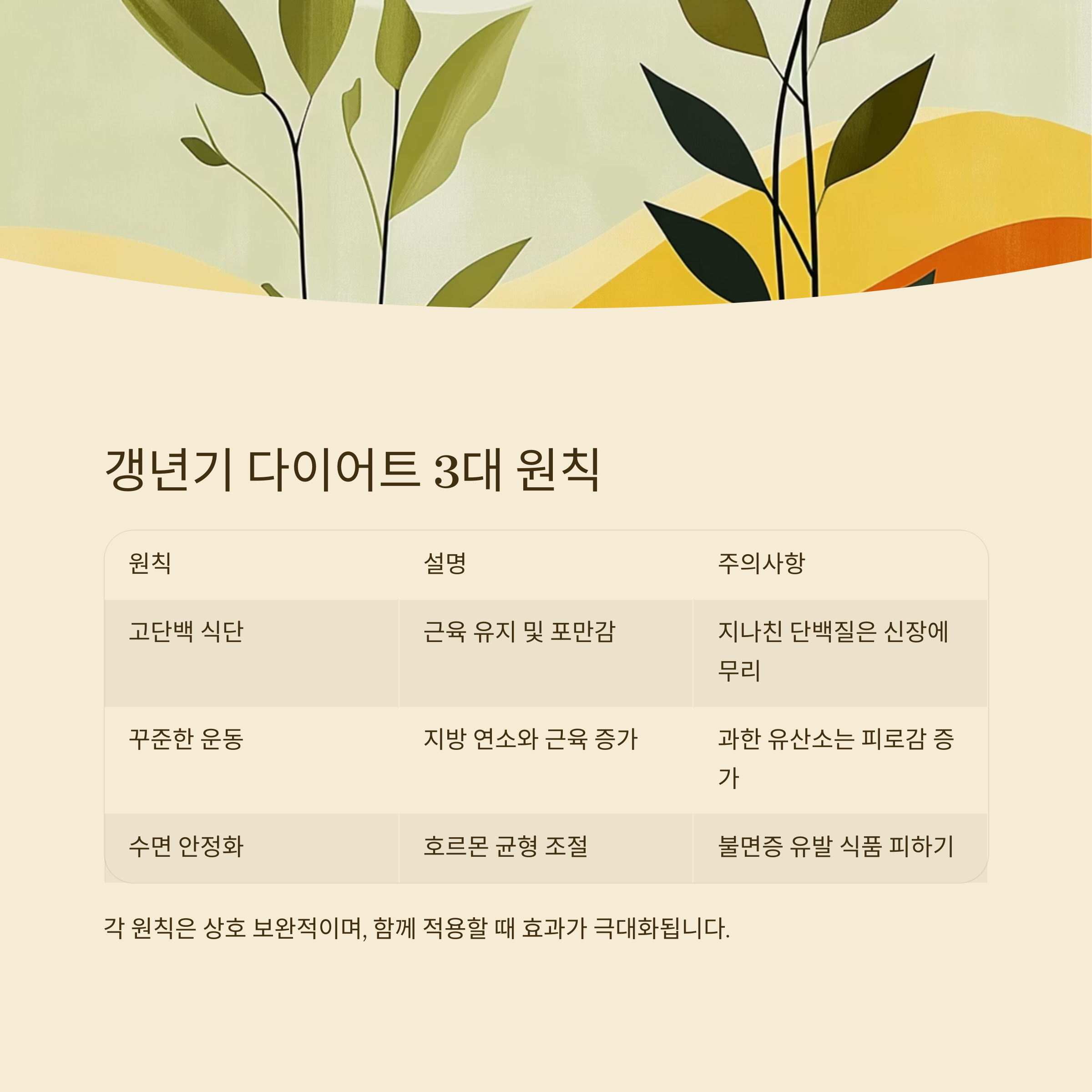 표로 정리한 갱년기 다이어트 3대 원칙
