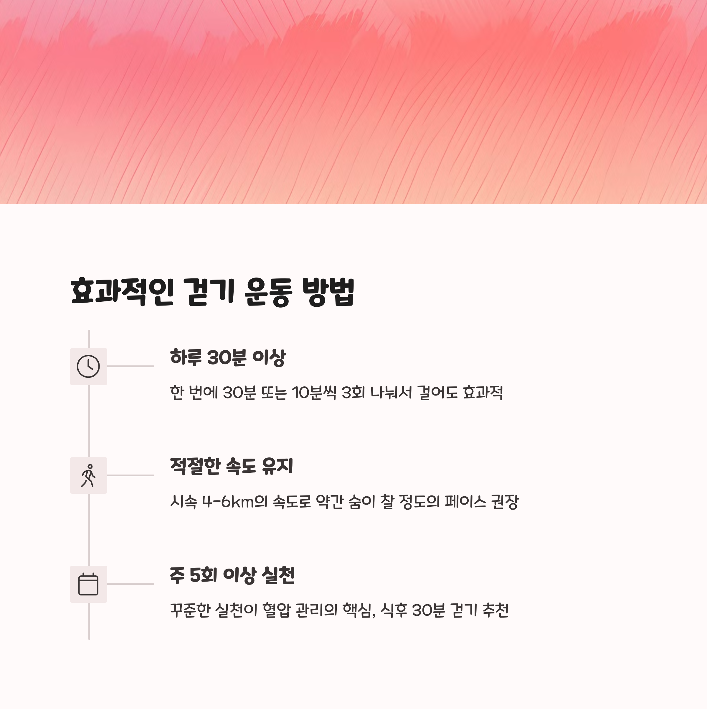 | 걷기 효과 | 혈압 변화 | 실천 팁 |