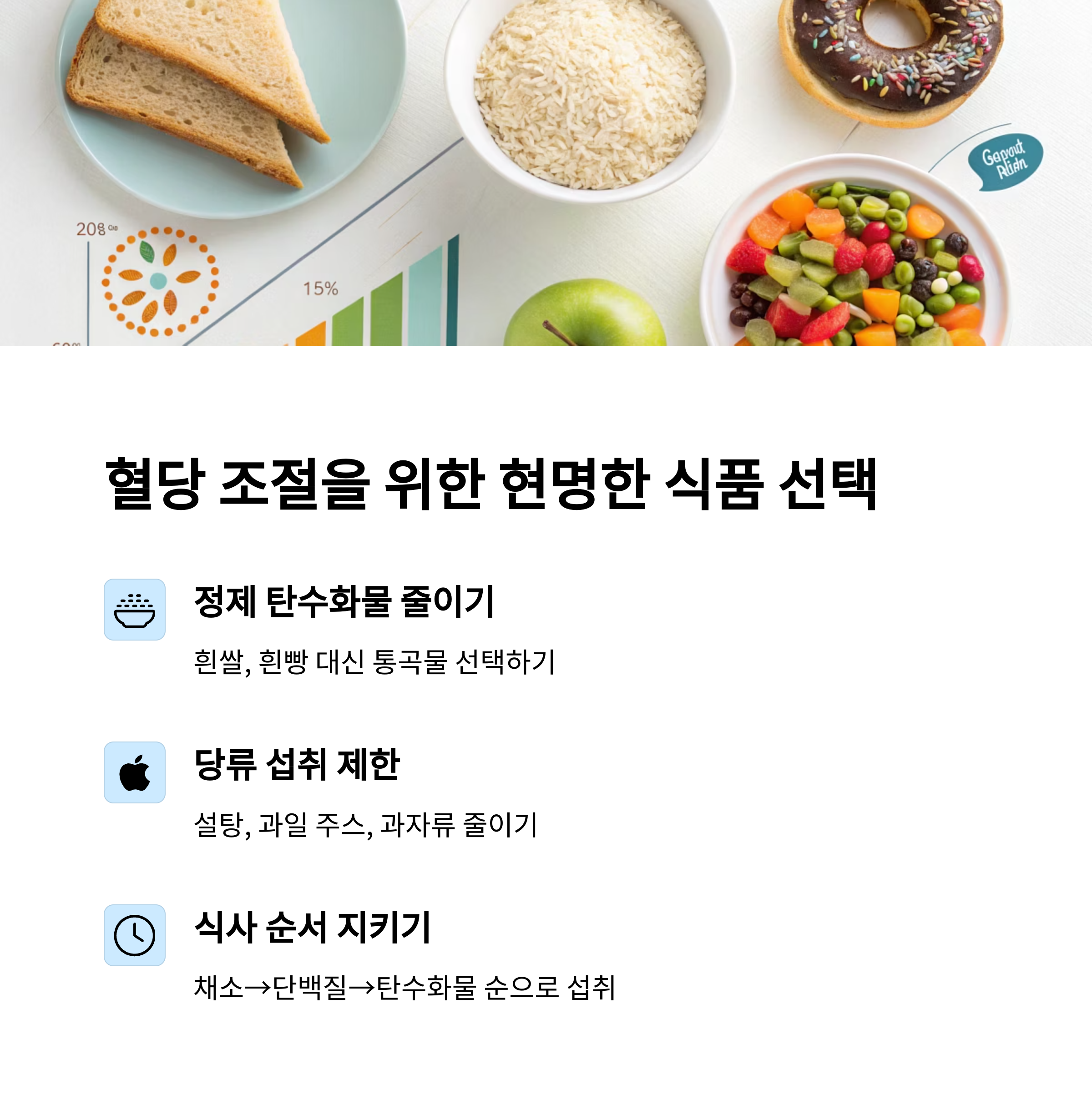 | 관리 포인트 | 식사 시간 일정하게, 정제 탄수화물 피하기 |