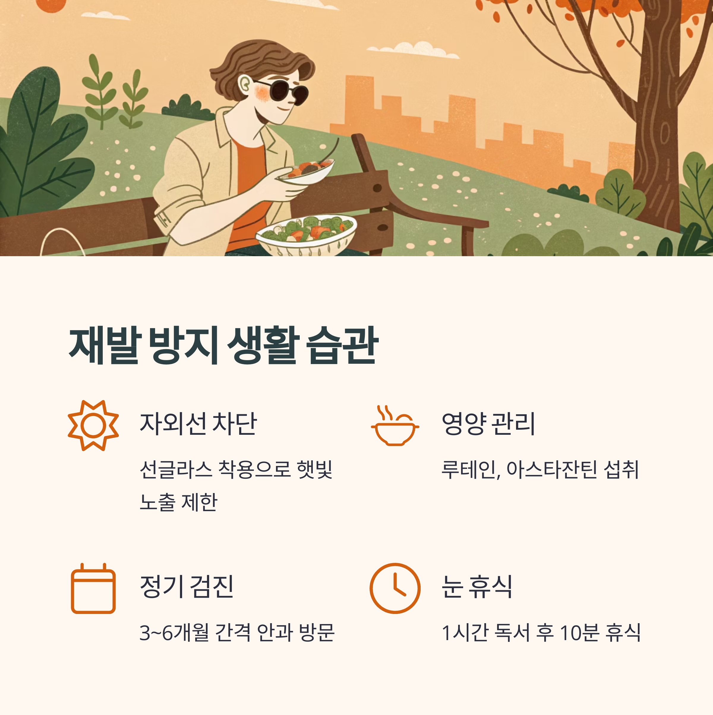 | 영양 관리 | 루테인, 아스타잔틴 섭취 |