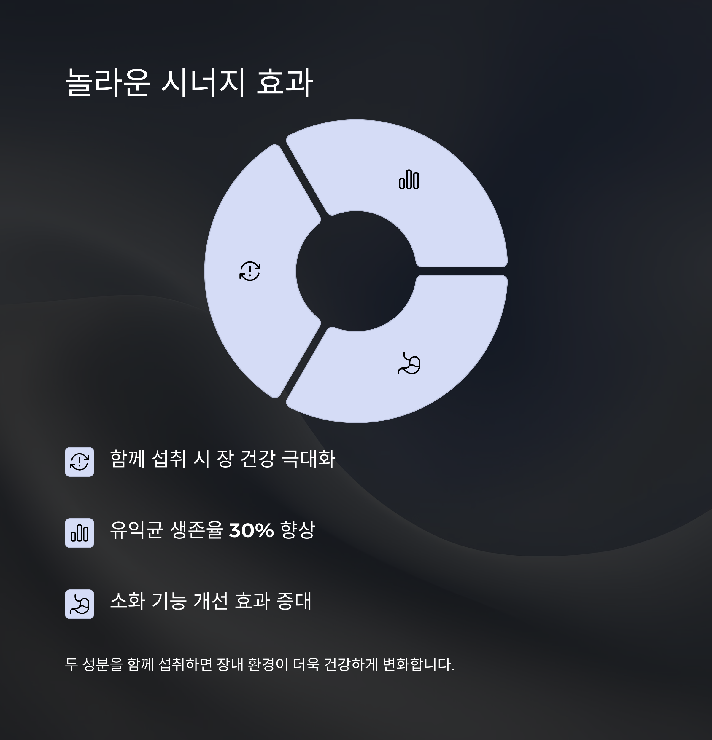 프로바이오틱스는 유익균 자체이고, 프리바이오틱스는 그 유익균이 잘 자랄 수 있도록 돕는 먹이입니다. 이 두 가지는 함께 섭취할 때 장 건강 개선 효과가 극대화되며, 신바이오틱스(Synbiotics)라 하여 두 성분을 조합한 제품도 출시되고 있습니다. 프로바이오틱스는 공복에, 프리바이오틱스는 식사 중 혹은 후에 섭취하는 것이 일반적이며, 장기적인 섭취와 꾸준한 습관이 중요합니다.