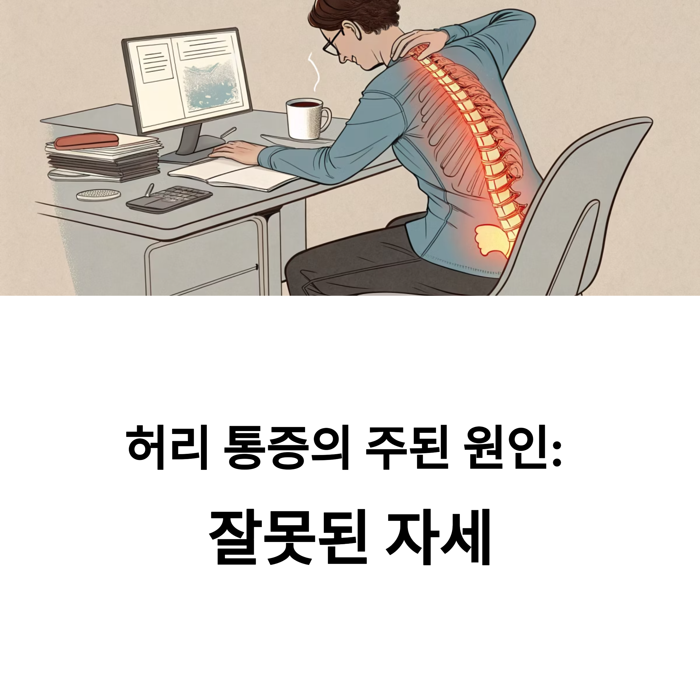 | 허리 통증 주요 원인 | 장시간 앉은 자세, 스마트폰 고개 숙임, 골반 틀어짐, 근육 비대칭 |