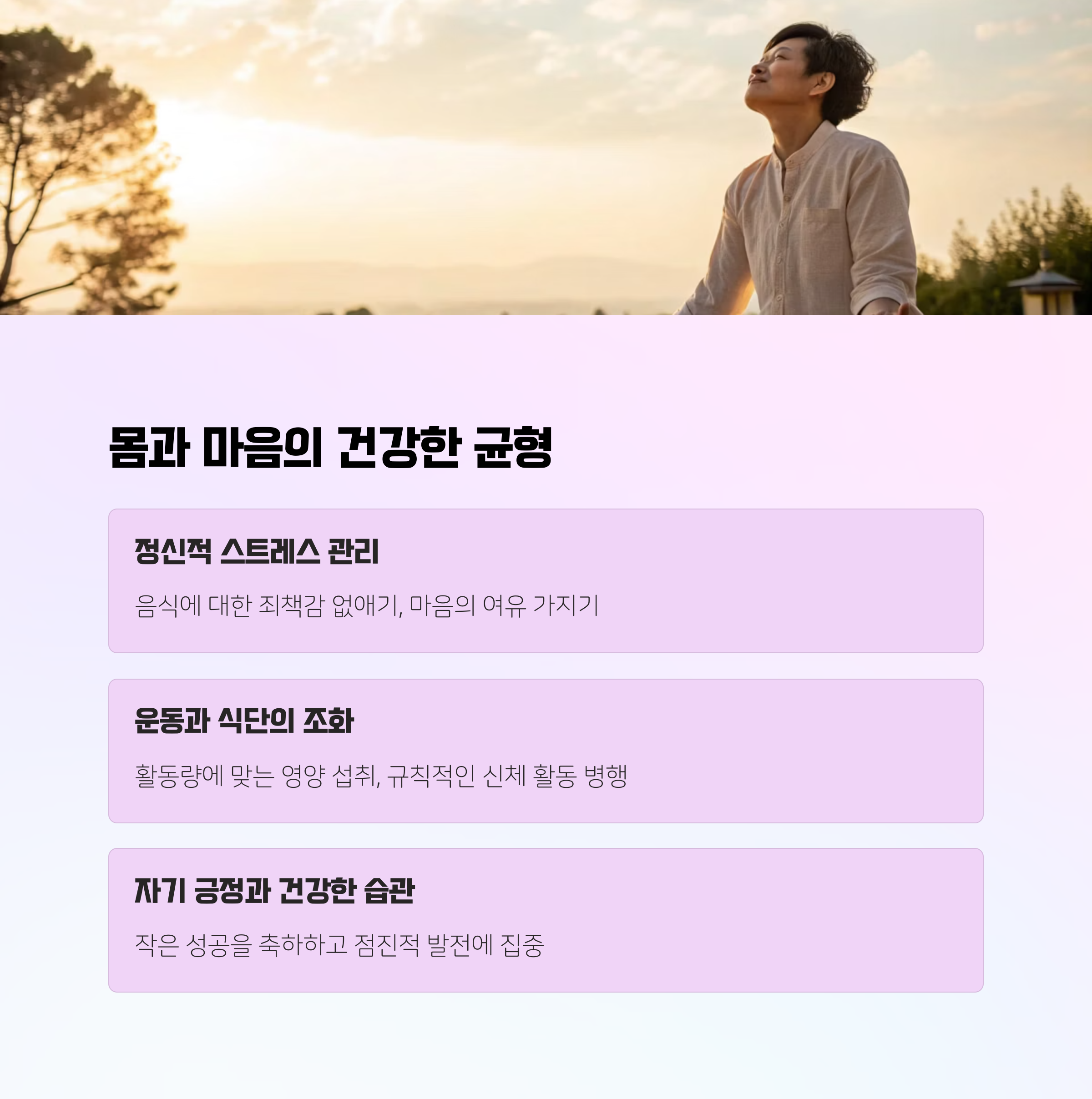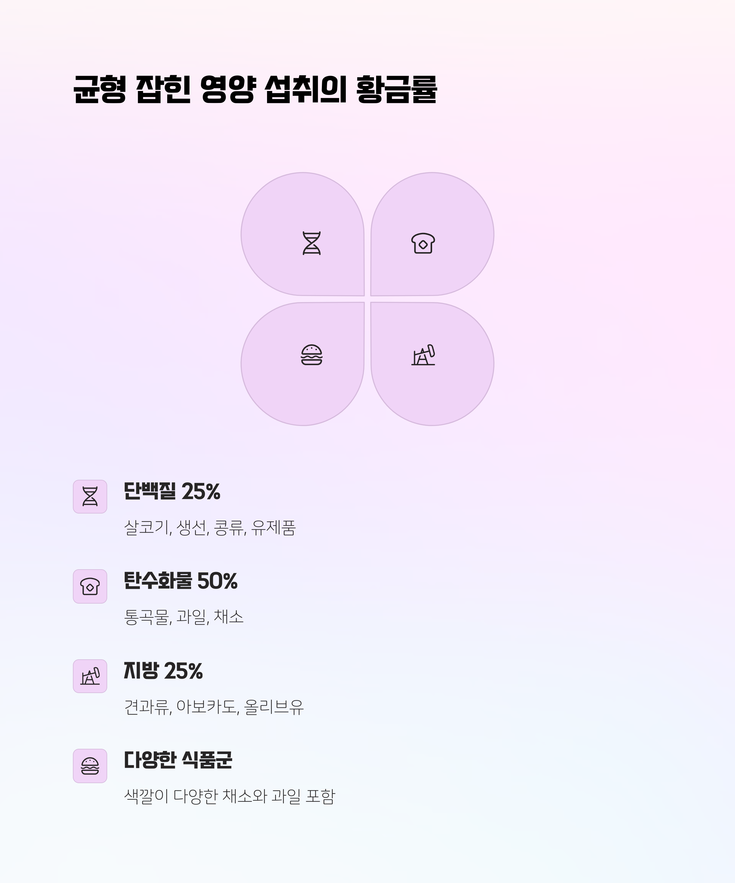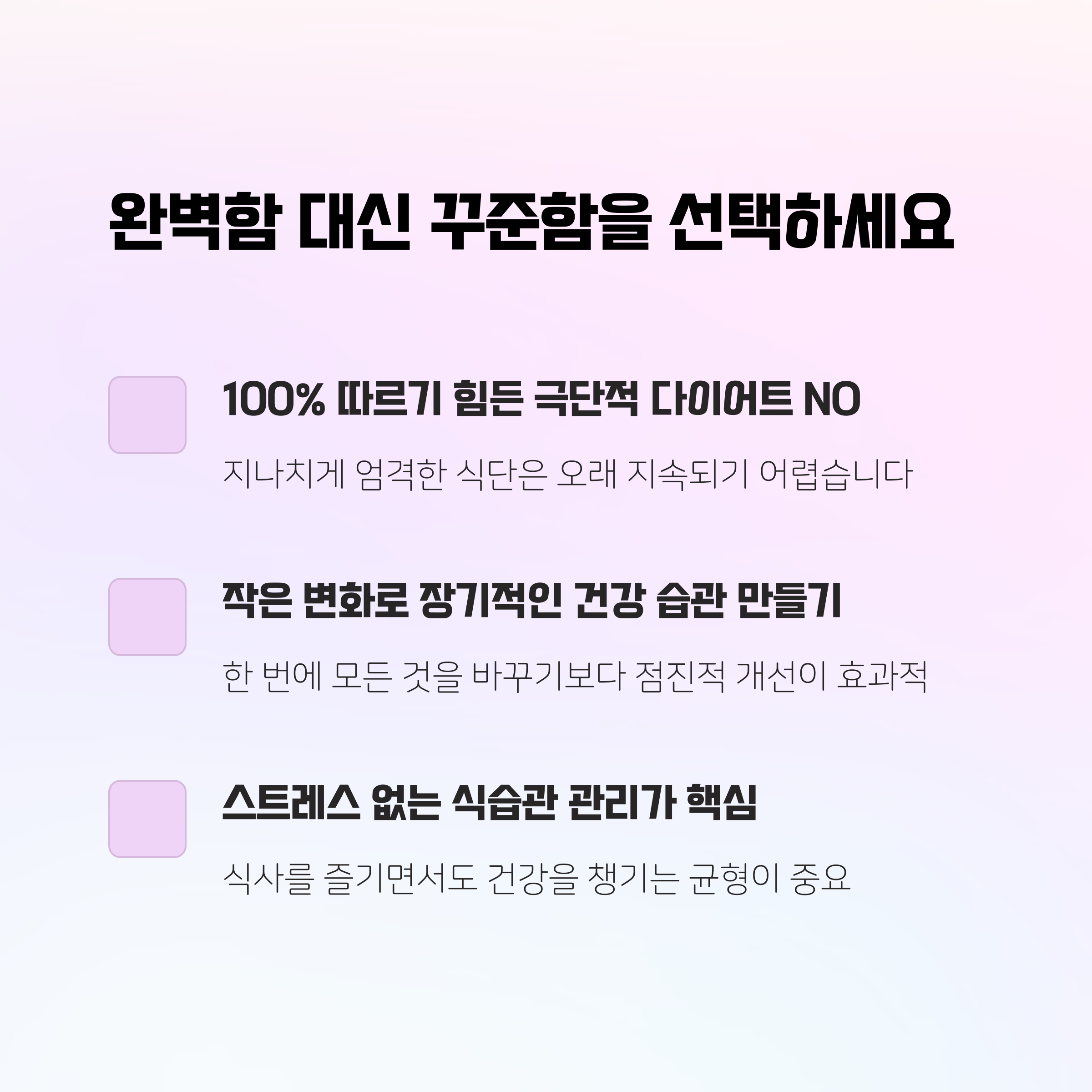 | 식단 구성 원칙 | 무리하지 않고 실현 가능한 구성법이 핵심이에요 |